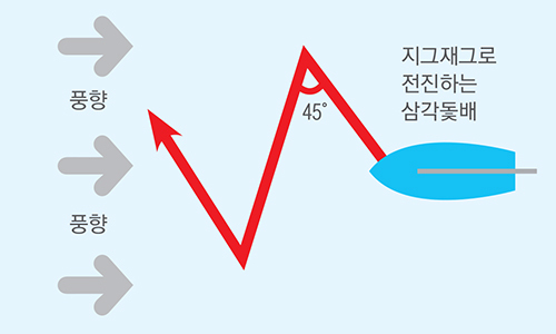바다 위에서 바람과 같은 방향으로 움직이면 훨씬 빠르고 덜 힘들게 이동할 수 있습니다.