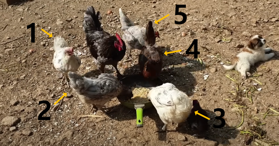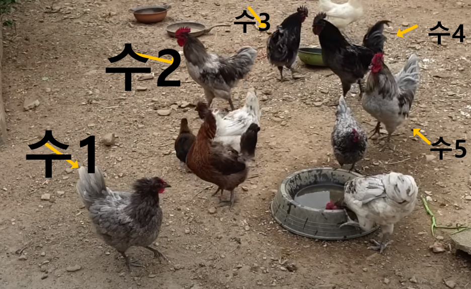 사실 이부분은 제가 검증해 보지 않기도 하고, 잘 모르기도 하지만 하여간 영상에 의하면 수탉은 일부 다처제라 8마리에서 10마리의 암탉을 거느린다고 합니다. 하지만 이 영상의 수탉은 소심해서 5마리 암탉만 거느린다고 하군요.