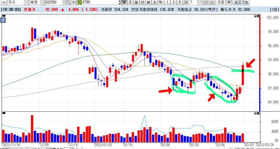 말나온김에 팁을 들이자면, 이런거죠. 음봉일때 버티면서 사는게 저 녹색부분의 느낌입니다. 언제 상승할지는 아무도 모르지만 그냥 분할매수로 계속 사는거죠. 안그러면 양봉때 돌파할때 한큐에 사던지....그런데 해보면 알겠지만 둘다 쉽지는 않습니다. 그럼에도 돌파할때 한큐에 사는것은 잘못 판단할 경우 무조건 손절이 나가야 되는 위치라 리스크가 매우 커집니다. 그래서 제가 맨날 기회가 오면 견딜만큼 매수하라고 입을 터는 이유죠.