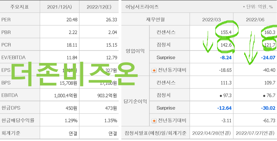실적이 좋지 않은 주식은 어차피 기대도 없기 때문에 실적이 나오든 안 나오든 큰 변동이 없을수 있습니다. 하지만 실적이 좋은 주식은 이미 가격에 그 기댓값이 모두 포합되어 있기 때문에 계속 지금보다 더 좋지 않으면 시장은 굉장히 실망하는 모습을 보여주는 때가 아주 많습니다. 이 부분은 우리가 ROE 부분에서 설명했으니 꼭 보시기 바랍니다.