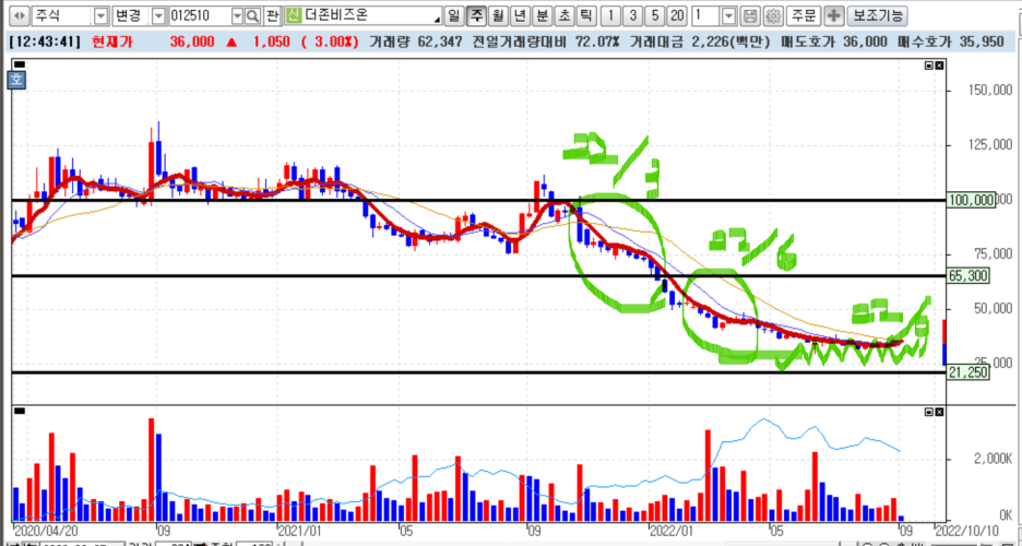 하지만 그 이후 차트를 볼 때 더 이상 하락하지 않고 횡보하는 것을 볼 때 3분기 실적은 기대가 없거나 아니면 그저 그렇겠구나를 예측할 수 있습니다. 때문에 좀 더 나아가자면 더존비즈온이 한 단계 레벨 업하려면 분명 애널리스트의 실적 추정치 정도는 충족시켜 줘야 할 거라고 예측할 수 있습니다.