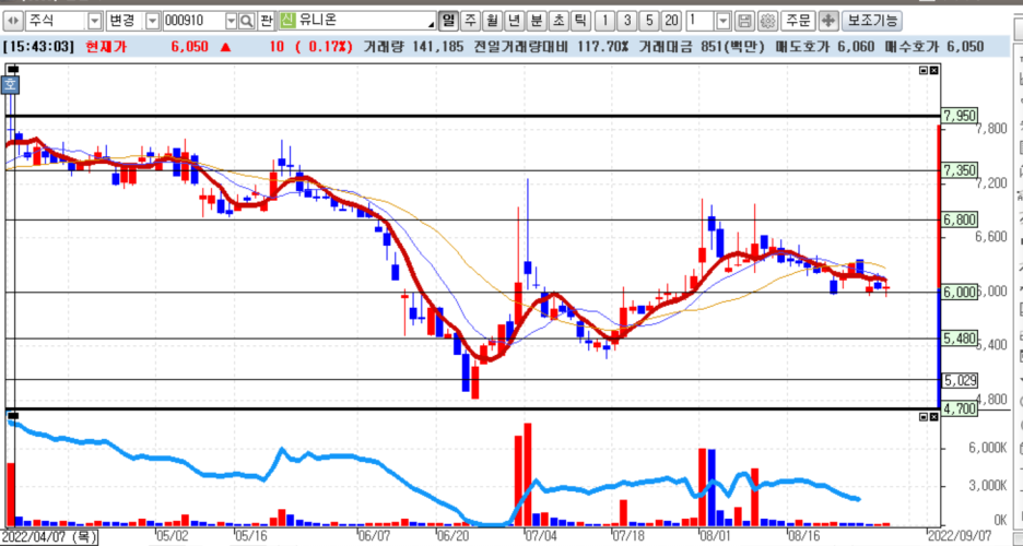 3. 만약 7350위로 상승하지 못하고 다시 하락해서 주가가 6000원에서 5480원 사이에 가면 매도한 물량을 재매수 해서 평단을 낮추시기 바랍니다.