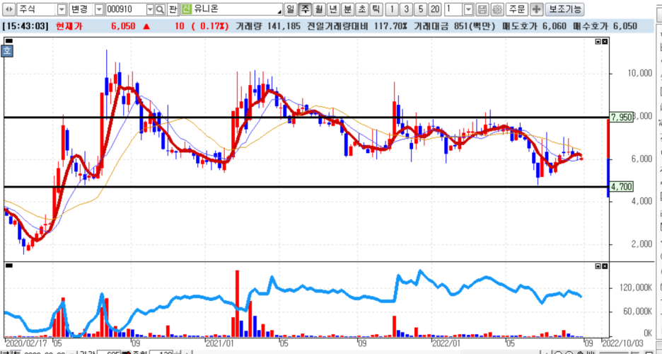 일단 유니온은 세력이 분명 있지만 기관들이 세력이라 좀 지저분하기도 하고 크게 상승하거나 또한 크게 하락도 하지 않습니다. 때문에 우리는 이 주식을 가지고 큰 그림을 그리기보다는 좋은 가격에 매수했다가 적당히 상승하면 매도하는 전략을 써야 합니다. 차트를 보고 사면 대부분 늦습니다.