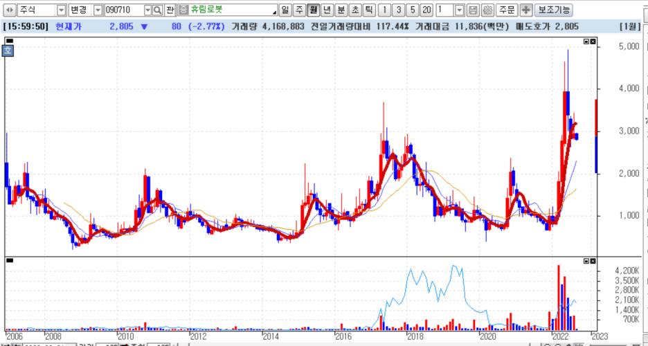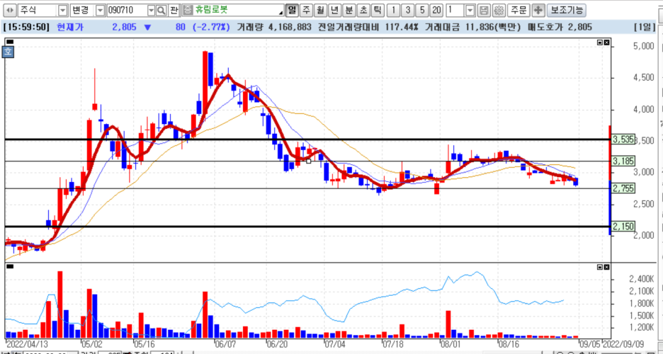 엊그제 상담한 TPC처럼 휴림로봇도 상담자의 말대로 분명 비전이 있을 거라고 봅니다. 대부분의 로봇산업이 마찬가지로 다들 보잘것없고 산업의 초기라 실적보다는 비전과 희망을 먼저 보는 게 맞다고 보지만, 문제는 TPC와 다른 점은 회사의 존속에 의문이 가는 게 가장 큰 리스크라고 봅니다. TPC와 반드시 비교를 하시기 바랍니다.