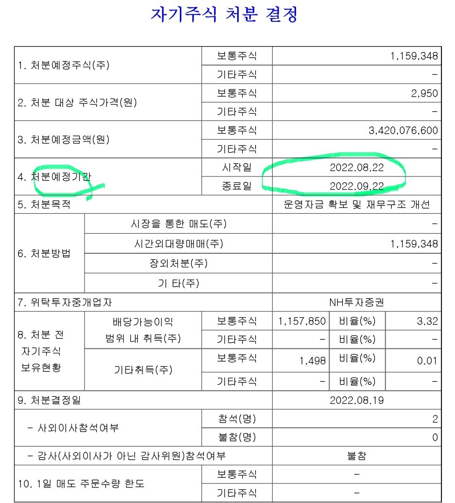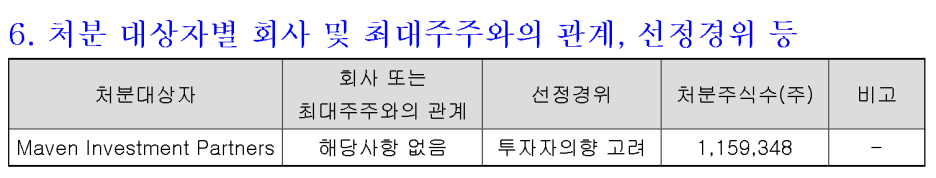 일단 상담자 분이 궁금해 하시는 자사주 처분 부분과 그걸 영국사모펀드가 받은 부분을 보도록 하겠습니다.