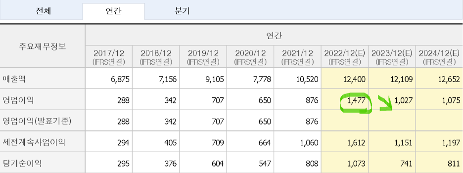 재무제표를 보면 실적이 꾸준히 좋아지는 모습이 보이긴 하지만 막 드라마틱 하게 좋아 보이고 그러진 않습니다. 더더구나 2022년을 정점으로 실적이 2023년엔 크게 하락할 예정입니다. 정해진 미래인데 차트가 아직 무너지지 않았다면 뭔가 모르는 게 있거나 혹은 앞으로 무너질 예정이거나 예상할 수 있습니다. 그리고 산업 분야가 가전제품의 내 외장재 케이스가 주력인데 딱히 성장성이 있어 보이진 않습니다. 이런 것을 배경으로 깔고 차트를 봅시다.