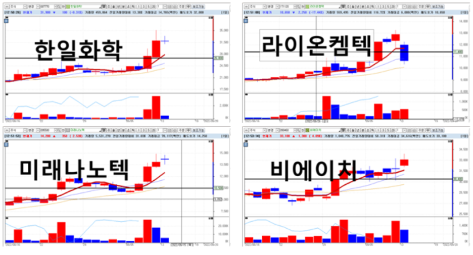 하지만 실전에서 갭상승과 갭하락을 활용하고 바라보는 시각은 조금 다릅니다. 다음은 어제 주식용어로 다룬 52주 신고가 종목인데 이를 참고해서 오늘의 갭상승 갭하락을 보면 좋은 공부가 될 것 같습니다. 이에 대한 실전 해석과 활용은 강의에서 다룰 기회가 있을 거라고 봅니다.