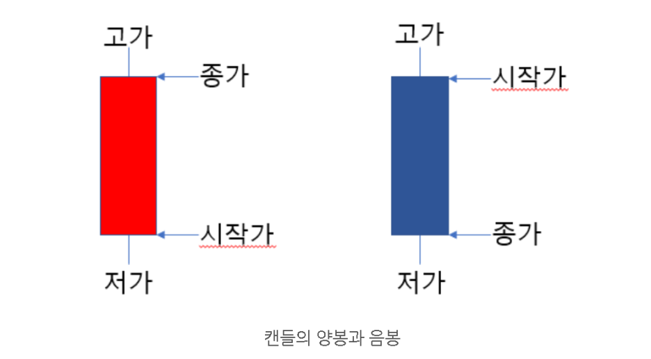 5. 양봉과 음봉의 차이는 시작가 보다 종가의 가격이 높다면 양봉 낮다면 음봉이 됩니다.