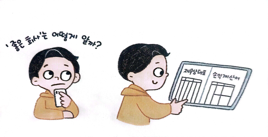 어휴, 말만 들어도 어려운 표 같다고? 하지만 투자를 하려면 회사가 돈을 잘 벌고 있는지, 돈을 엉뚱한 데 쓰지는 않은지 반드시 알야만 해. 그래야 좋은 회사인지, 성장할 가능성이 큰 회사인지 알고 투자할 수 있을 테니까. 그래서 어떤 회사인지를 알아보려면 바로 이 '재무 상태표'와 '손익 계산서'를 살펴봐야 해. 어른들도 투자하기 위해 이 재무 상태표와 손익 계산서를 보는 공부를 해. 어린이 친구들이 직접 이걸 들여다 보지는 않더라도 어떤 정보가 담긴 문서인지는 않아 두는것이 좋아.