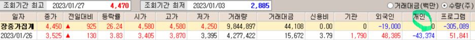 그냥 딱봐도...개인만 바글바글 사겠구나라고 생각되는데요. 왜냐하면 이런주식의 기술적 매매, 즉 트레이딩성 매매만 가득하기 때문이죠. 매동을 볼까요? 아마 제말이 틀림 없을 겁니다.