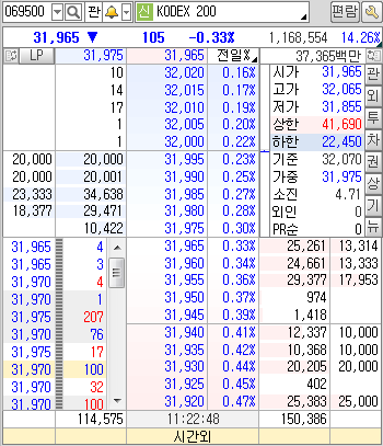 위의 그림을 보면 호가창에 몇만주 정도 되는 큰 물량이 걸려 있죠? 이런게 바로 LP물량입니다. 단 유의사항은 LP 물량은 09:05 분부터 15:20분 사이에만 LP물량이 있고 그 외에시간에는 호가를 제시하지 않기 때문에 혹 장전동시호가나 장시작후 5분이내에 혹은 장마감 동시호가에 대량을 매매해야할 경우가 생긴다면 가격에 큰 변동이 생길수 있음을 알고 있어야 하겠죠.