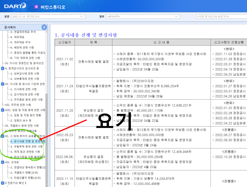 신주인수권, 전환사채 등의 발행 상황과 잔여 물량을 환인할 수 있다. 오버행 가능 여부등 수급상황을 파악할수도 있어요.