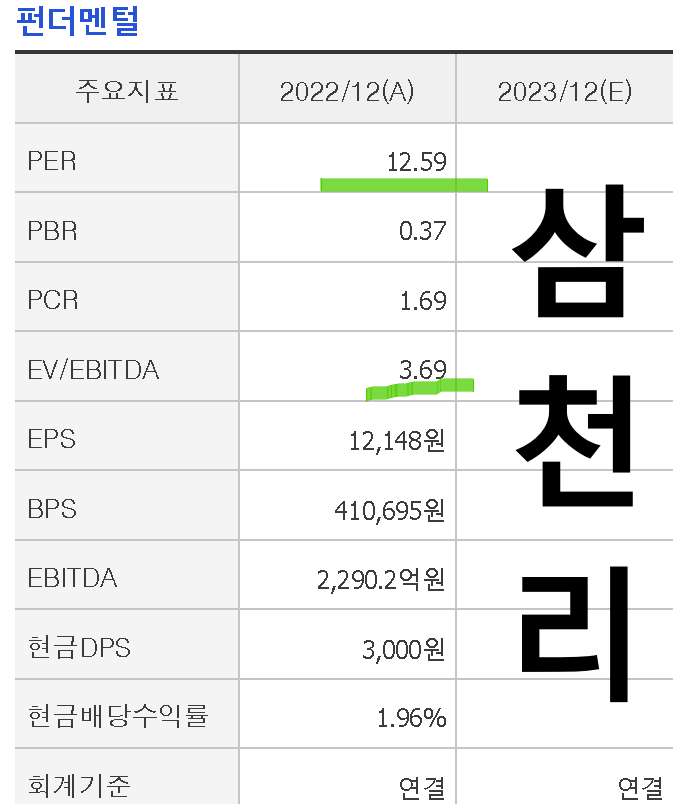 지금은 삼천리 가격이 폭락해서 PER 12.59배 수준으로 내려왔지만, 폭락하기 전에 PER은 거의 100배 정도 되었을거라고 봅니다. 그런데 EV/EBITDA 값을 보면 오히려 삼성전자보다 좋습니다. 이말은 무슨말인가 하면 회사자체의 내실은 매우 좋다는 말이죠. 즉 기업본연의 가치에 비해 돈을 잘 번다는 말이죠. 다만 작전세력들에 의해 엄청나게 주가가 상승해 버려서 PER값은 미친듯이 변했지만, 그러던가 말던가 EV/EBITDA 값은 크게 변하지 않기 때문에 우리는 PER로 목표주가를 세우는 것보다 주가의 변동성에 영향을 덜 받으면서 기업의 가치를 평가할수 있는거죠.