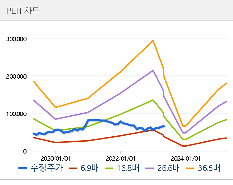 사실 어떤 종목으로 이 이야기를 해야할까 여러종목을 돌려 봤는데요. 많은 종목들이 코로나 시기에 재무재표가 다 망가져 버려서 좀 깔끔하게 보여줄 차트가 없더라구요. 그래서 그냥 가장 표준인 삼성전자를 보는걸로 해요. 드라마틱한 보여주기용 차트는 아니지만 원리를 알면 되는거니 말이죠.