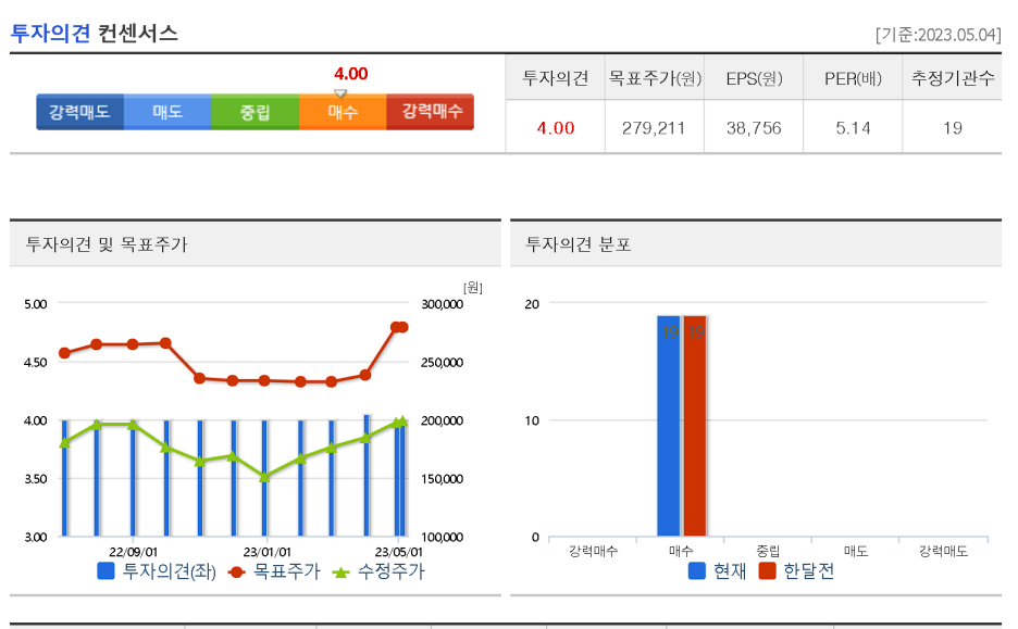 그런데 여기서 핵심포인트는 바로 수시로 상향이라는데 있겠죠. 책에서는 삼성전기에 대해서 언급하고 있는데요. 블로그에서 똑같이 볼수는 없고 우리 같이 찾아봐요. 바로 현대차이죠. 자료는 네이버 종목분석자료에서 가져 왔습니다.