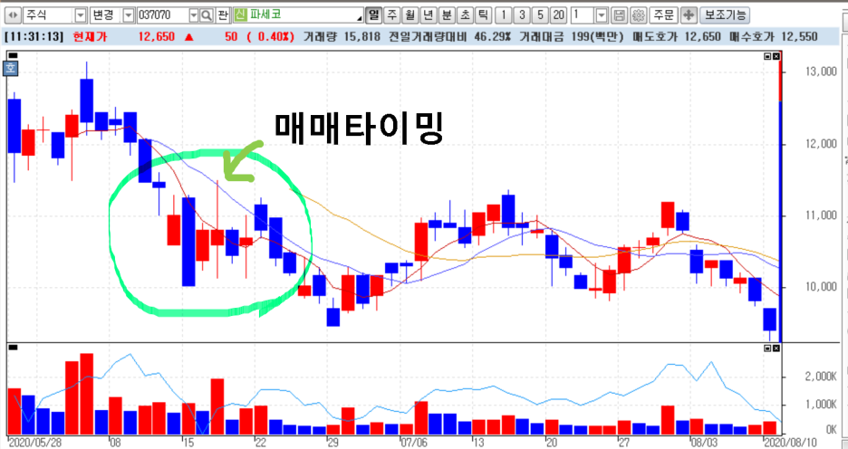 서울옥션도 마찬가지로 상승 잉태형이 나온 뒤로 매매할 타이밍이 있었습니다. 하지만 조금 길게 보면 분명 큰 수익을 낼만한 초기 타이밍이었다는 것을 알 수 있습니다.
