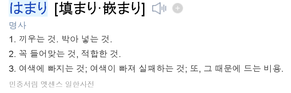 사실 이게 참 웃기는 말인데 왜? 갑자기 일본어를 쓰는지...ㅋㅋ 일본어로 하마리란 끼워 넣다란 말입니다.