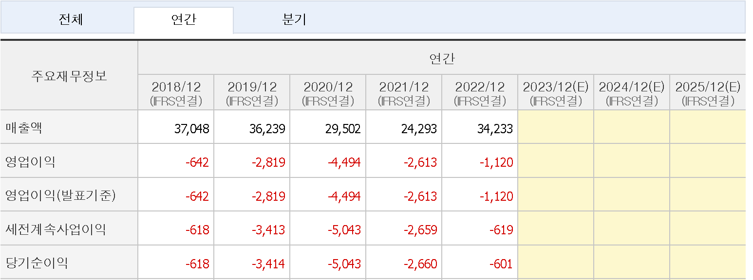 뻘건색이 압도적인데요...다만 점차 빨간 숫자의 규모가 줄어 간다는데 큰 의미를 두면 될것 같네요. 아마도 올해 내년정도면 흑자 전환도 가능할듯도 싶은데....이런 시점에서 횡령뉴스가 발생한거라 좀 실망스럽긴 합니다. 하지만 아직 확정된것은 없으니 너무 단정은 금물이죠.