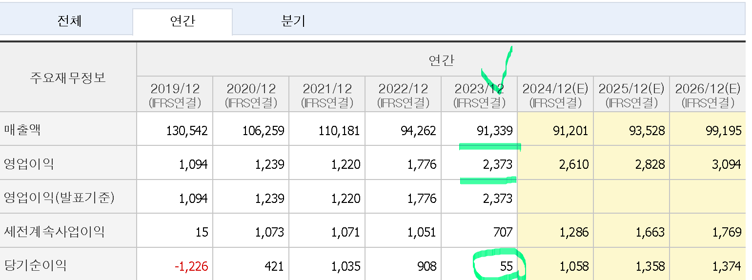 2023년에 뭔가 재무적으로 반영해야할 회계적 이슈가 있었나 봅니다. 일시적인것으로 봐도 무방하지 않나 봅니다.