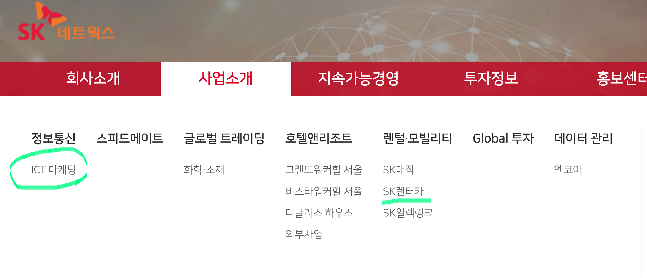 글로벌 사업, 정보통신, 모빌리티, 호텔&리조트, 렌털·가전