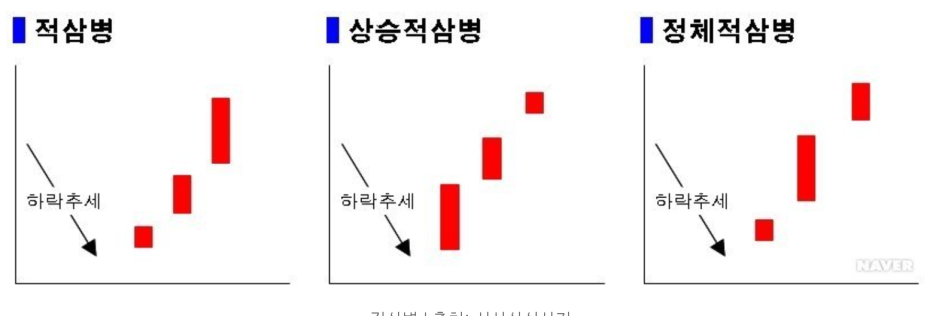 적삼병 : 赤三兵(한자), three white soldiers pattern(영어)