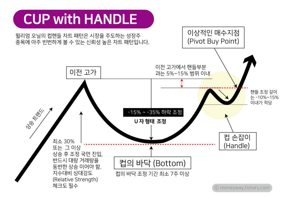 74. 차트 파동 매매 3 (컵 위드 핸들, Cup with handle , 큰 조정후 찾아오는 신뢰도 높은 상승기회) 본문