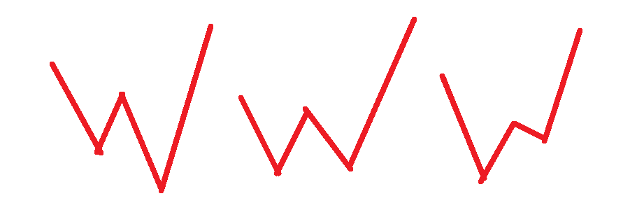 쌍바닥은 크게 이렇게 3가지 형태로 생각해 볼수 있는데, 특별히 이런 모양에 각각의 이름도 있을거라고 생각하고 각각 뭐라뭐라 의미를 부여했을거라고도 봅니다. 하지만 우리는 그런식으로 나누어서 생각하지는 말고 이런 패턴이 나타날때 투자자들의 심리는 어떻게 달라질까에 대해서 생각하는게 오히려 옳은 자세라고 봅니다. 왜냐하면 이미 결과를 알고 보면 각자 다 다른의미처럼 보여질 수 있지만, 우리는 실시간 차트를 보면서 투자를 하는 거잖아요. 때문에 어짜피 투자중엔 그게 그겁니다. 하지만 쌍바닥이 완성된 후에는 각각의 모양마다 추세변화의 흐름이 다르다고 해석할순 있겠죠.